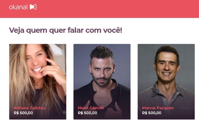 Já pensou em pedir para o Marcos Pasquim gravar um vídeo para sua mãe? Ou para a Gretchen falar algumas zoeiras para seus amigos? É justamente isso que a plataforma Okanal visa realizar. Por lá, 250 famosos brasileiros vendem vídeos para fãs, em valores que variam de R$50 a R$500. As informações são do IG.