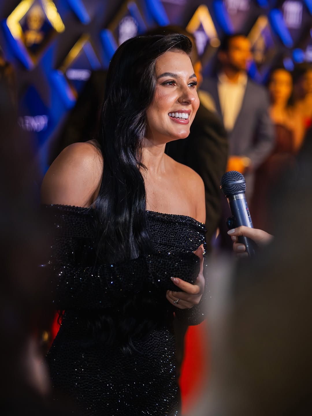 Durante o evento, ela apareceu usando um vestido preto com brilho e foi responsável por apresentar uma das premiações da noite. Ao ser perguntada se pretendia dar lances em algum item, respondeu que não descartava nem mesmo "adquirir" um novo amor.