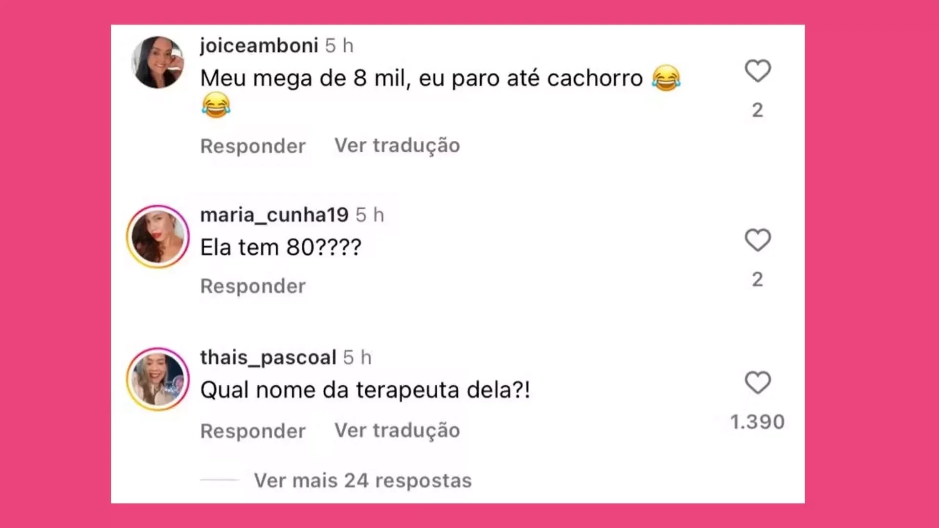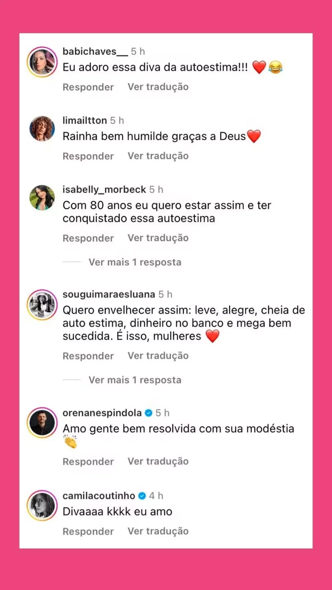 A antiga soberana da bateria da Grande Rio ponderou sobre sua popularidade digital ao considerar um retorno à avenida. "Acho que ano que vem eu venho de novo. Só não quero vir em carro, sentada, que nem uma velha. Ah, não venho mesmo. Só se for daqui a dez anos, se vierem me homenagear. Enquanto estou nos 80, é no chão. Não, logicamente, como rainha da bateria", declarou.