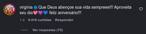 Comentário de Virginia Fonseca desejando feliz aniversário. Foto: Reprodução