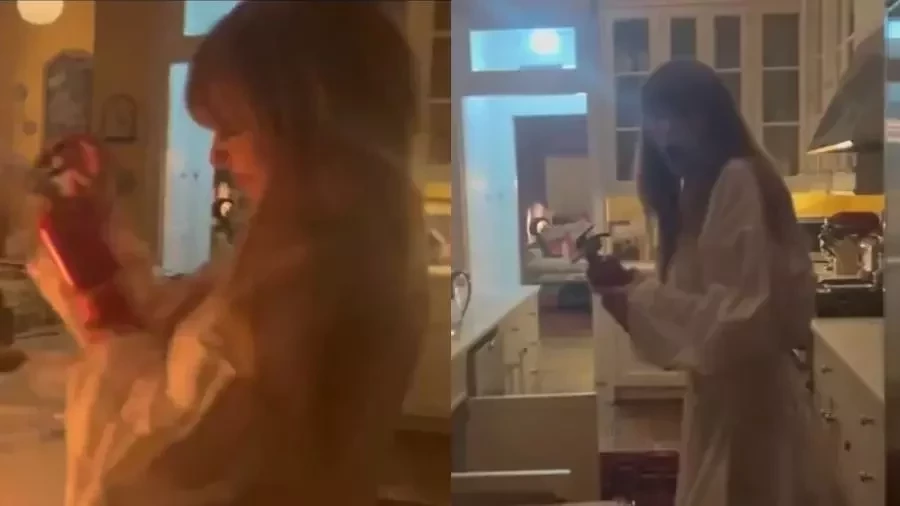 Nesta sexta-feira (21) Taylor Swift foi vista desesperada em um vídeo onde apaga um incêndio dentro de sua própria casa. A gravação do momento de pânico foi feita nos Estados Unidos e publicada por Gracie Abrams, cantora e amiga da loira.
