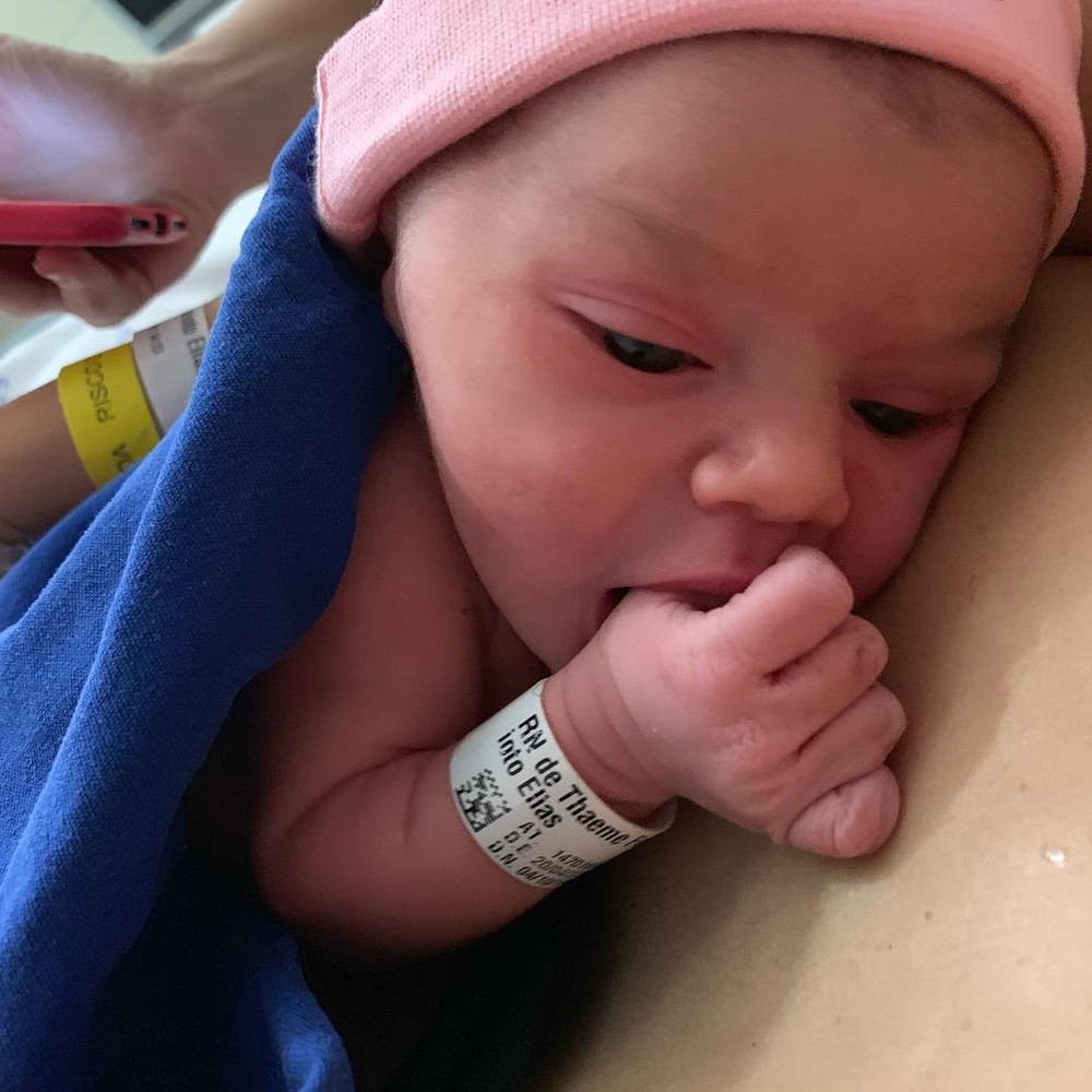 Thaeme Mariôto ficou em trabalho de parto por quase 40 horas e deu à luz Liz no sábado (20) através de uma cesária. 'Acabou tendo que ir para a cesariana a pedido dela mesmo, que não queria que a nossa filha entrasse em sofrimento de maneira alguma', relatou Fábio da Luz compartilhando uma foto da menina.