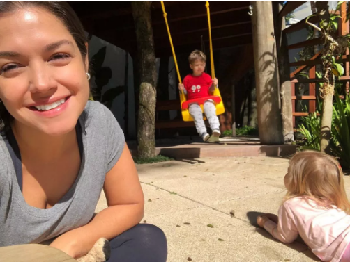 A atriz contou que a manhã de sábado (17.08) foi com os filhos, Teo e Melinda, no parquinho de casa.