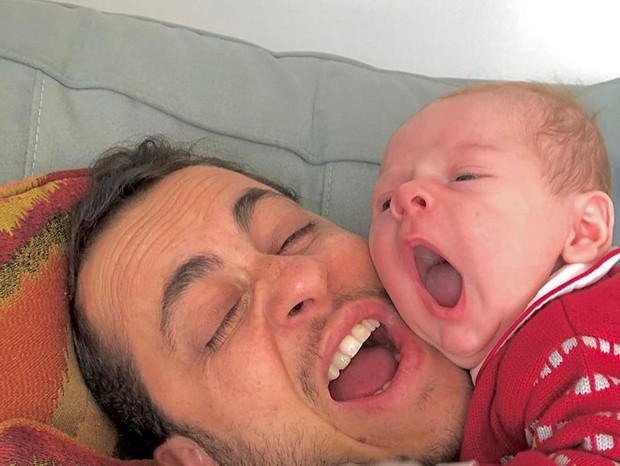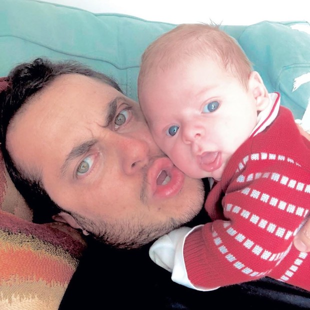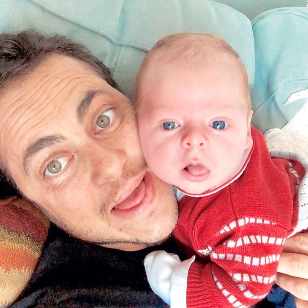 Ator publicou imagens nas quais aparece coladinho com o filho de um mês