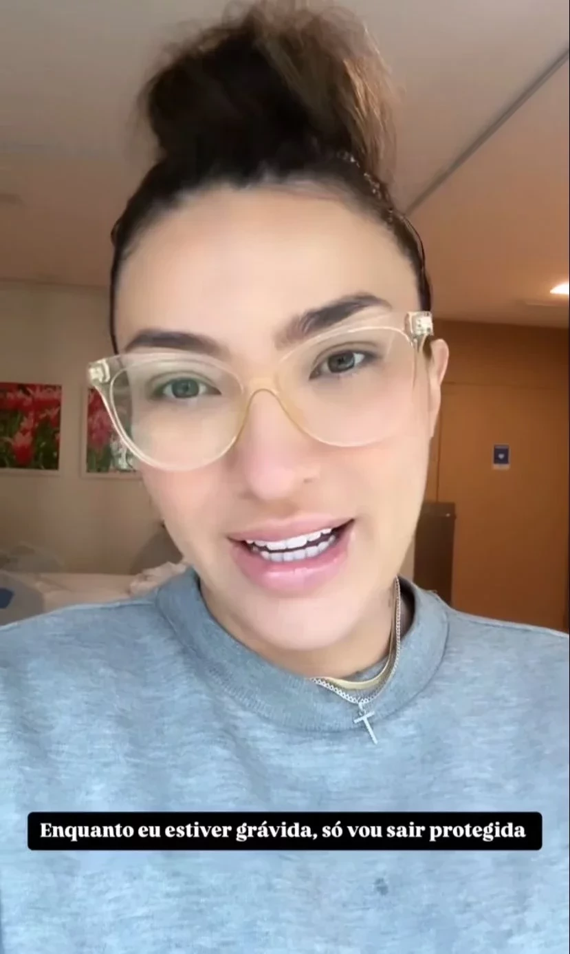 A influenciadora relatou que este momento agora é de muitos cuidados, e disse que logo logo irá se recuperar. “Agora é aguardar. Na madrugada, fiz novos exames. Fui super bem assistida lá, na maternidade. Tinha que ser lá, por conta do acompanhamento obstétrico. E, no mais, agora é isso. Não estou cansada, no momento. Mas estou evitando subir escada. (...) Estou me hidratando bastante, fazendo uma alimentação saudável e leve. Tudo para a gente se recuperar o quanto antes, em nome de Jesus”, afirmou.