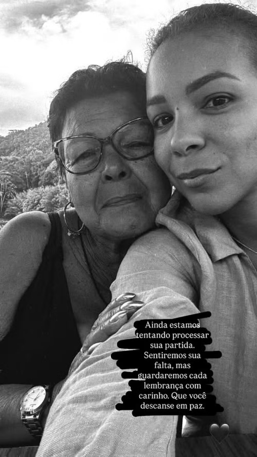 A notícia foi compartilhada por Belle nas redes sociais neste sábado (14). Nos Stories do Instagram, ela lamentou a morte da sogra e publicou uma mensagem de despedida.