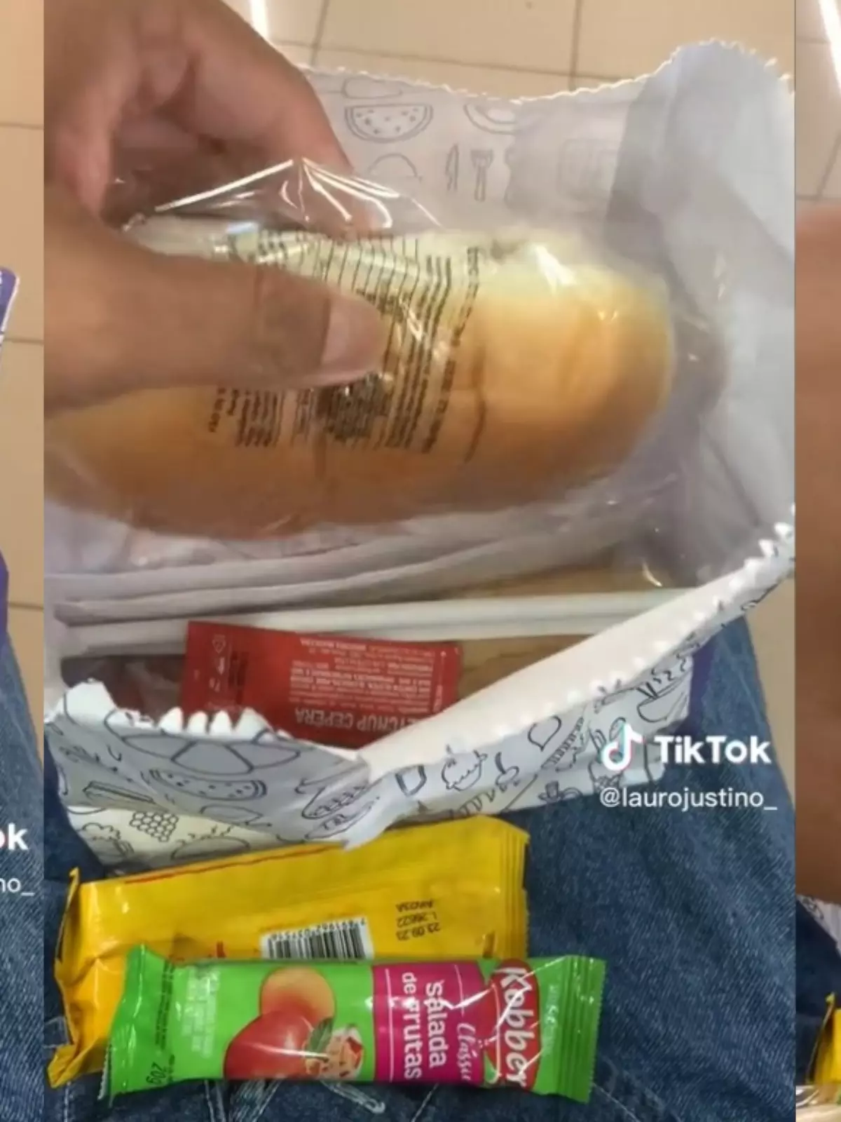 O tiktoker Lauro Justino fez um 'unboxing' do lanche recebido em uma gravação do 'Altas Horas', de Serginho Groisman. O saco fornecido pela Globo estava sortido. Havia dois pães com frios, maçã, barra de cereal, um pacotinho com biscoito 'wafer' e sachês de catchup e mostarda. O vídeo não mostra, mas havia suco e refrigerante.