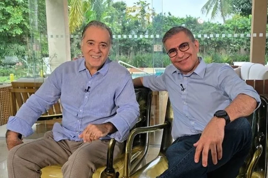 Tony Ramos e o repórter Helder Duarte. Foto: Divulgação Globo