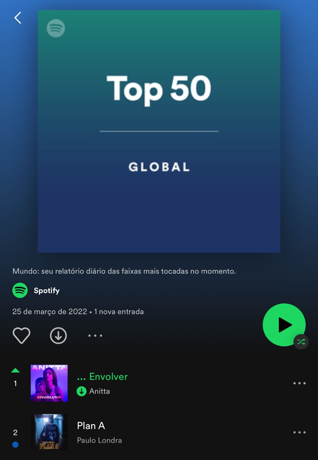 Reggaeton lançado por Anitta em novembro de 2021, "Envolver" alcançou nesta sexta-feira (25) o 1º lugar no ranking das mais ouvidas do mundo, segundo a plataforma de música Spotify.