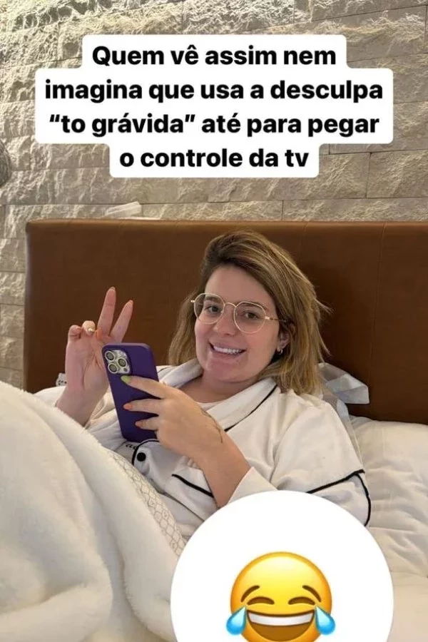 “Quem vê assim não imagina que ela usa a ‘desculpa’ tô grávida até pra pegar o controle da TV”, escreveu.