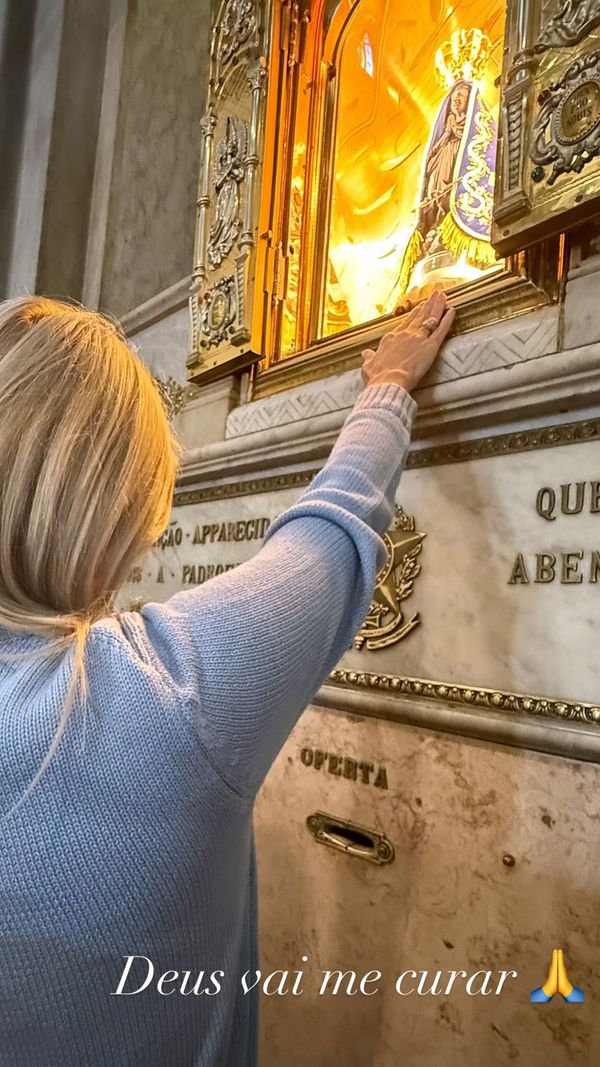 A socialite compartilhou momentos da visita nas redes sociais e relatou a experiência: “Estou aqui, firme na fé de Nossa Senhora Aparecida, vivendo cada dia com esperança e coragem”. Ela também declarou: “Sigo acreditando na minha cura contra o câncer de mama, com coração cheio de gratidão por todo amor e apoio que recebo”.