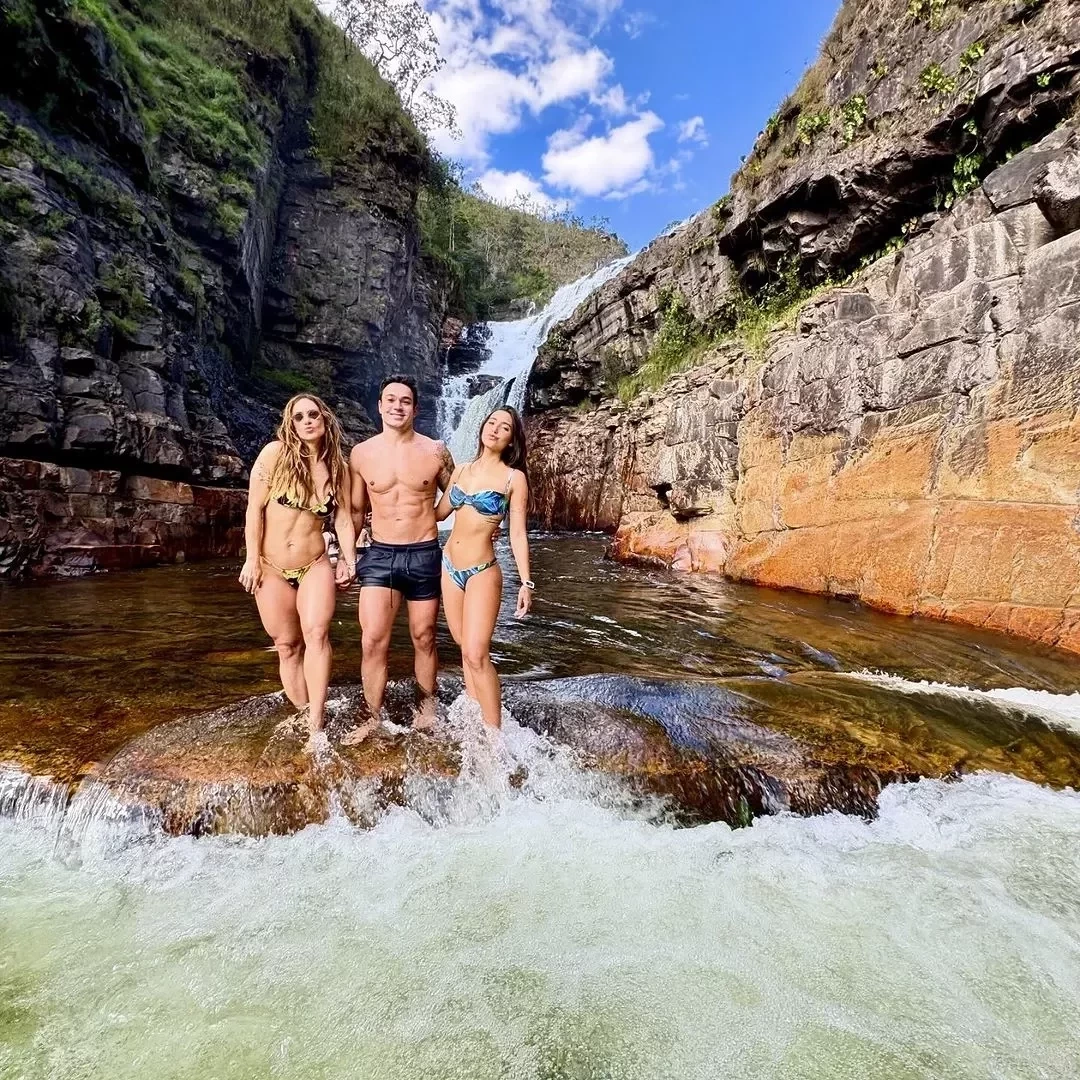 Vanessa Lopes aproveitou a sexta-feira (31) se divertindo com sua família. A ex-BBB visitou cachoeira Cataratas dos Couros, em Goiás, acompanhada dos pais Alisson Ramalho e Liziane Lopes.