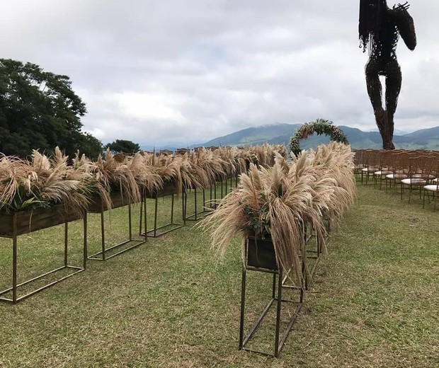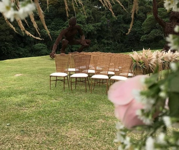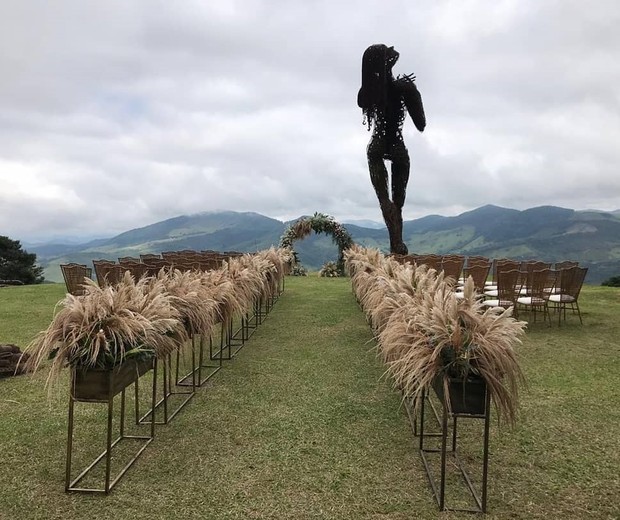 A decoração do cenário externo ficou por conta de Silvana Feluti. Também em suas redes sociais, a profissional deu detalhes da celebração. ''Um cortejo em meio aos gigantes... majestosas montanhas que compõem a Serra de Ibitipoca e enormes esculturas que fazem tudo parecer minúsculo. Nesse cenário maravilhoso montamos a estrutura que serviria de palco para a celebração do casamento de um casal apaixonado e seu pequeno grupo de convidados. A decoração deveria estar em total harmonia com toda a beleza do local. Arco com flores e um cortejo de jardineiras foram os elementos decorativos escolhidos'', contou Silvana.