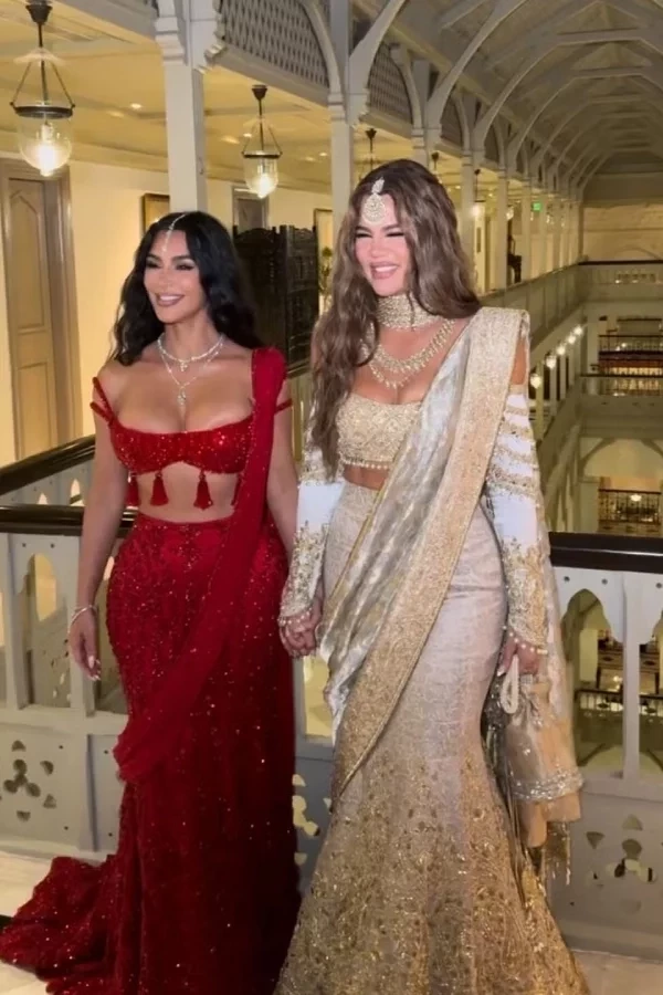 Kim e Khloé Kardashian chegaram ao evento na sexta-feira e compartilharam fotos dos seus looks no Instagram. Ex-primeiros-ministros britânicos, Boris Johnson e Tony Blair, também foram vistos no aeroporto de Mumbai antes das celebrações, e o lutador e ator John Cena foi visto parabenizando parentes do anfitrião.