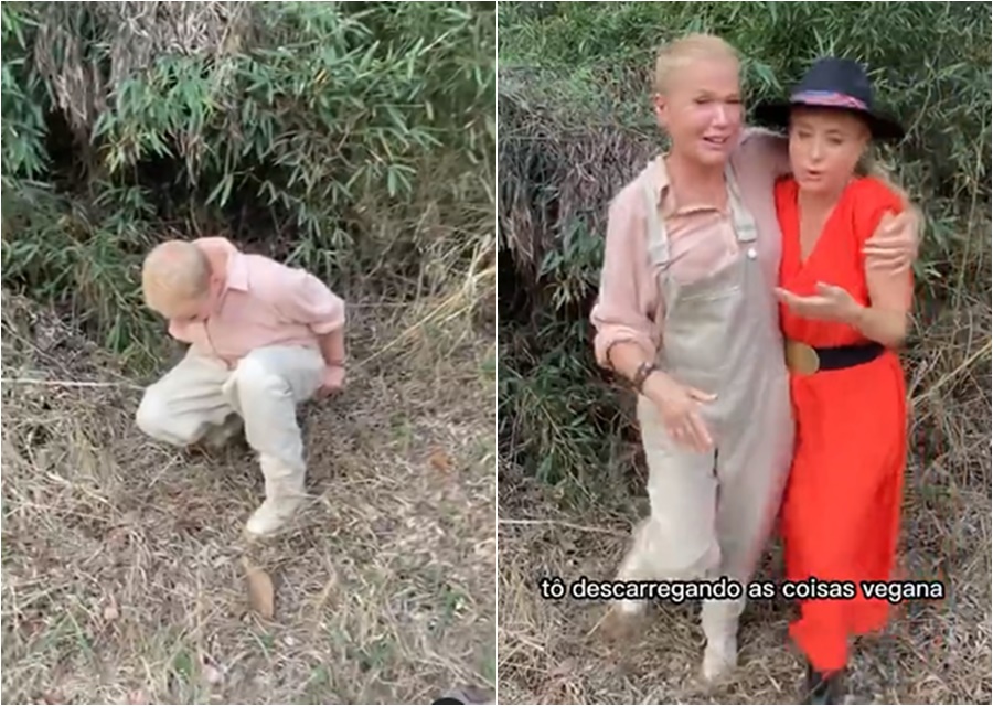 Xuxa, 59, tem postado nos últimos dias vídeos de humor para falar sobre veganismo. Desta vez, ela compartilhou um vídeo no Instagram fingindo defecar no mato durante uma gravação com a apresentadora Angélica, 48. Na legenda, ela se definiu como vegana raiz e escreveu que não tem privacidade nenhuma, mas a amizade vem em primeiro lugar.