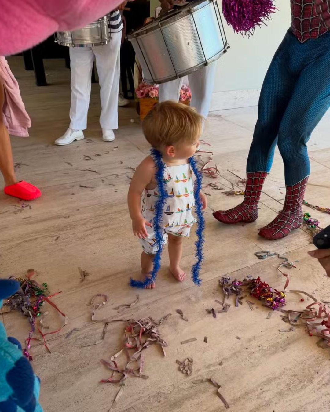 "Acordamos com surpresa do meu amor, preparou um bloquinho de carnaval para as crianças e todo mundo se jogou (risos). É carnaval no Brasil mesmo", relatou Virginia. A atitude de Vini Jr. rendeu elogios dos fãs do casal, que comentaram mensagens como "Que amor!" e "Mesmo de longe o Vini sempre fazendo vocês felizes".