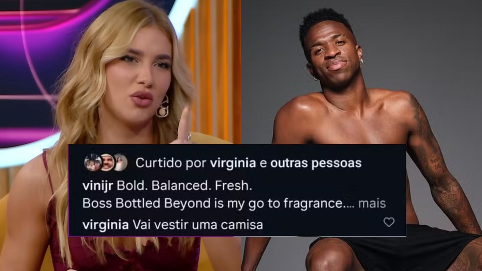 Virginia Fonseca divertiu os internautas nesta quinta-feira (20), ao comentar em um ensaio publicado por Vini Jr. no Instagram, onde o jogador do Real Madrid aparecia sem camisa em uma campanha de perfume. A apresentadora, que reagiu ao post por ciúmes bem-humorados, explicou sua postura diante do relacionamento à distância, assumido por ambos no fim de outubro, e mostrou como lida com a exposição nas redes sociais.