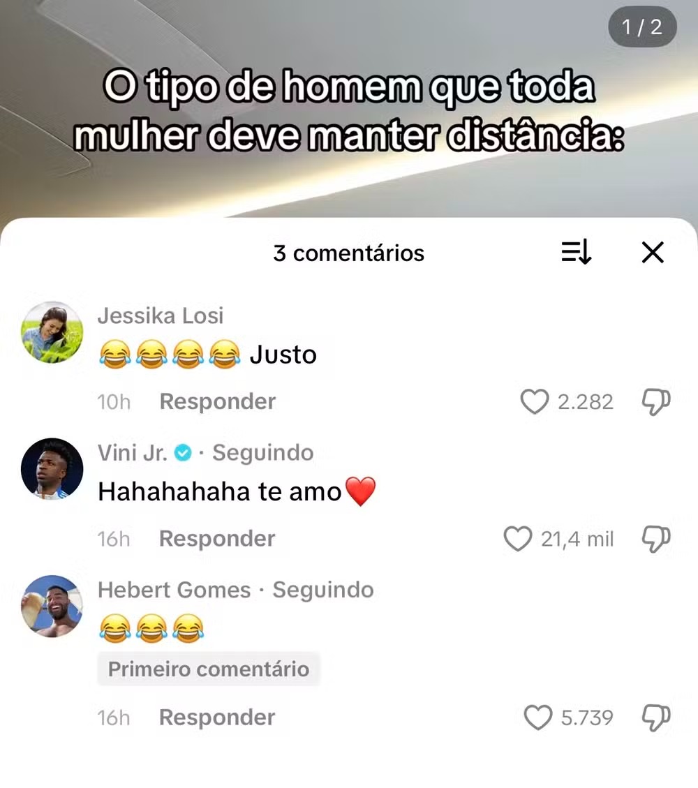 Comentário de Vini Jr. — Foto: Reprodução/TikTok