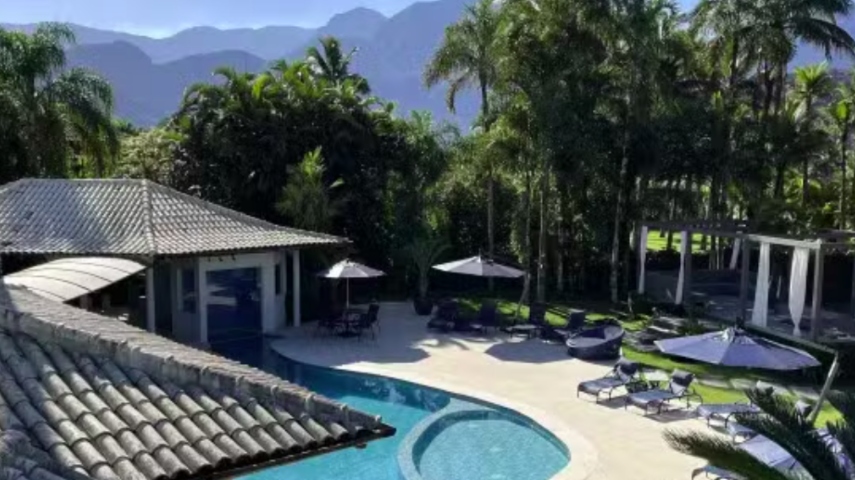 💰LUXO - A casa conta com 18 mil metros quadrados, além de heliponto e pier particular. Os luxos não param por aí, já que a mansão conta com campo de futebol, quadras de futevôlei e de tênis e um spa. A área gourmet conta com uma enorme piscina e o acesso é feito por meio de uma ponte sob um lago natural.