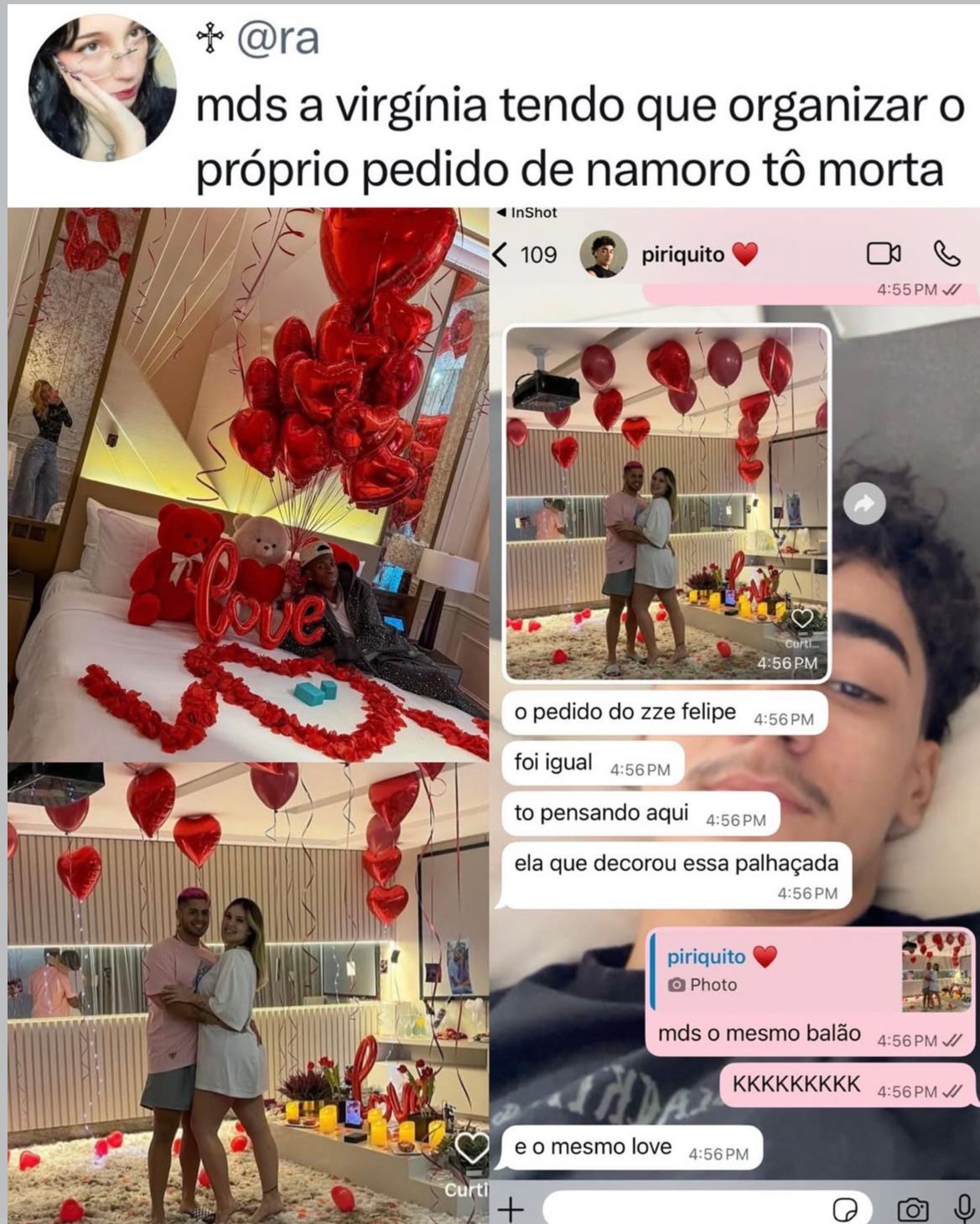 Após o anúncio do namoro entre Virgínia Fonseca e Vinícius Jr., internautas passaram a especular que a influenciadora teria sido a responsável por organizar o próprio pedido. As teorias ganharam força nas redes sociais nesta sexta-feira (31).