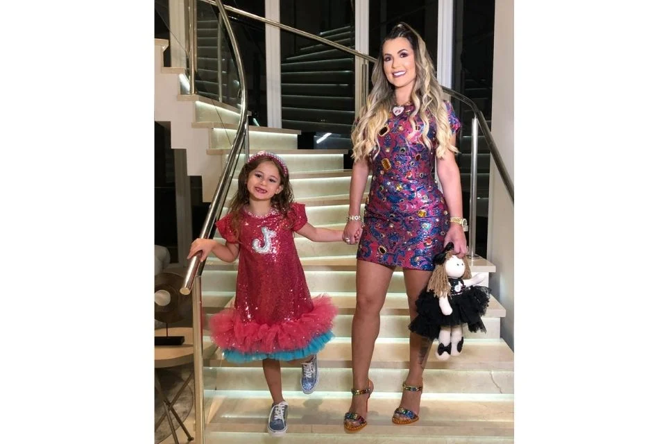 A advogada e a filha usaram looks exclusivos. Deolane Bezerra usou um vestido da grife Dolce & Cabbana avaliado em R$ 70 mil reias e a filha dela custou R$ 8 mil reais