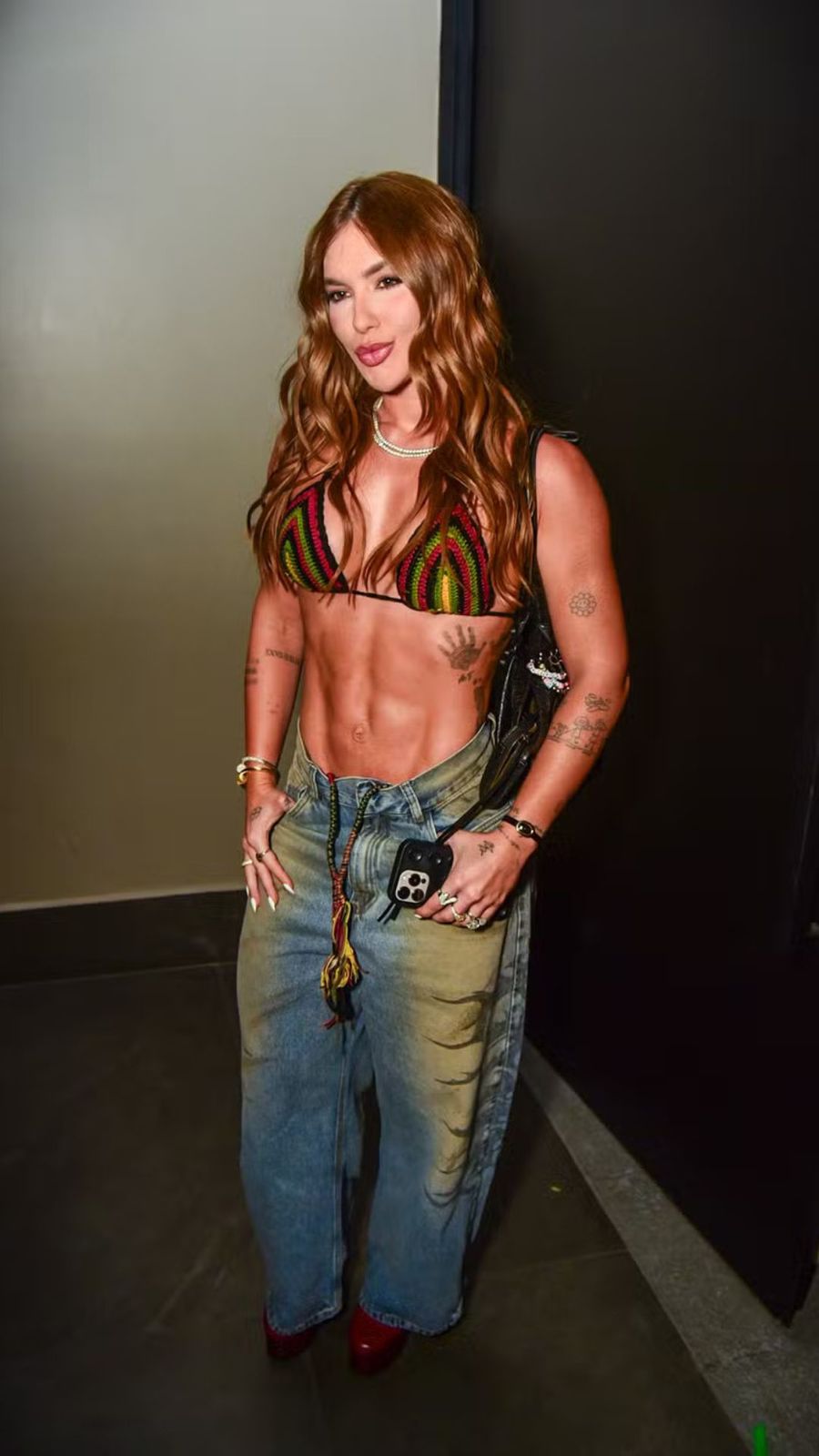 O look escolhido pela ex-mulher de Zé Felipe foi uma calça de cintura baixa combinada com top. Ela roubou a cena e posou para os paparazzi.