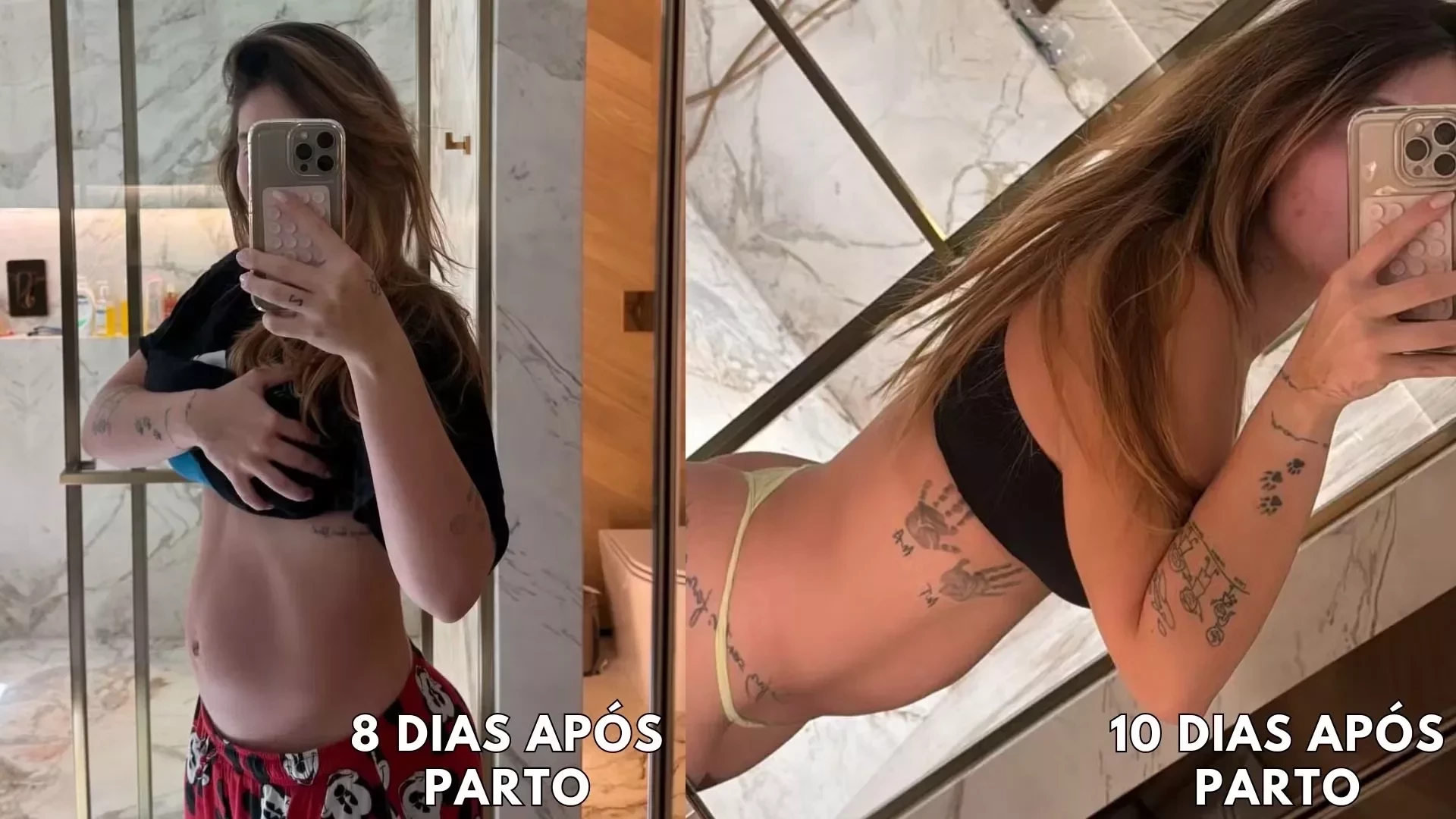 Logo após o parto, Virginia também havia compartilhado uma foto semelhante. Na imagem, era perceptível que sua barriga ainda apresentava um leve inchaço. "Menos de 24 horas pós-parto. Ainda vemos uma gravidinha de uns 6 meses?", comentou de forma descontraída na ocasião. Quatro dias após o nascimento do filho, ela apareceu novamente, dessa vez sem roupa, para mostrar a evolução de sua barriga. Ao completar oito dias, a influenciadora divulgou uma nova foto.