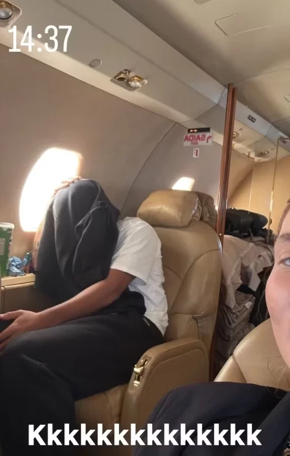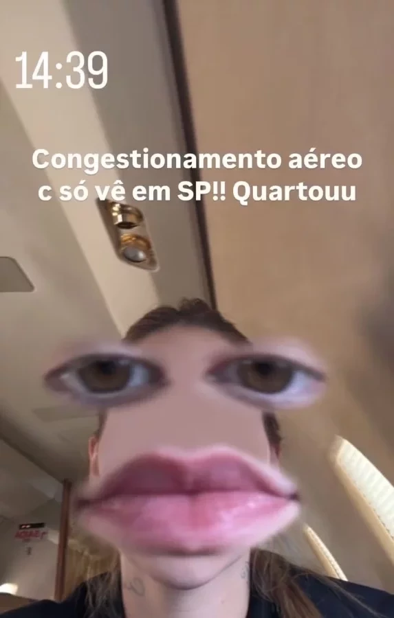 "Avião arremeteu e aqui não passa nem Wi-Fi, tá?", começou ela, se mostrando nervosa e registrando a tensão de sua equipe. "A tristeza do Nê e do Tomtom quando o avião arremeteu".
