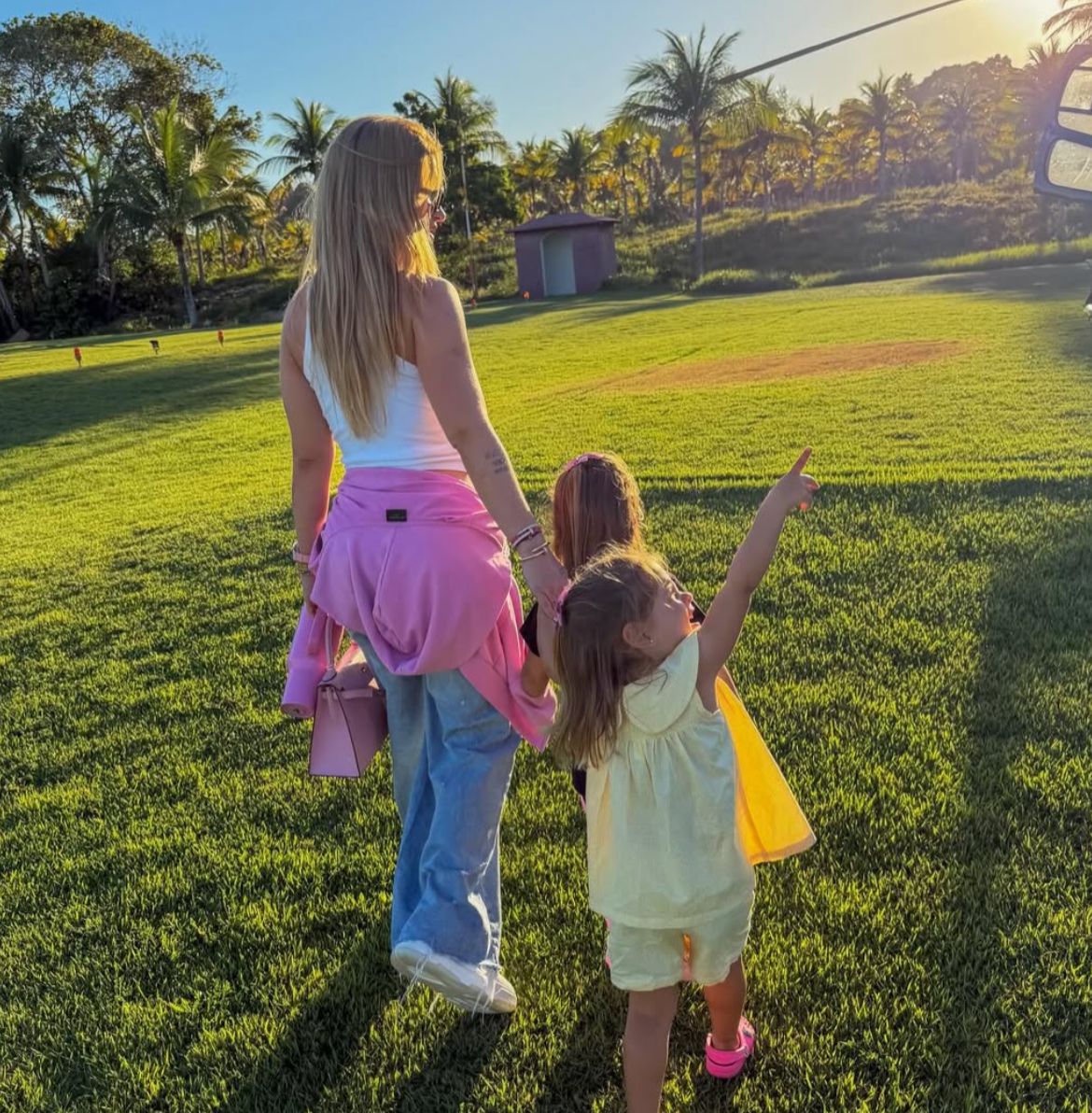 Durante as férias, Virginia passou um tempo em Trancoso, na Bahia, acompanhada do namorado, Vini Jr., e das crianças. O grupo aproveitou dias de descanso, passeios e momentos em família em um dos destinos mais disputados do litoral baiano.