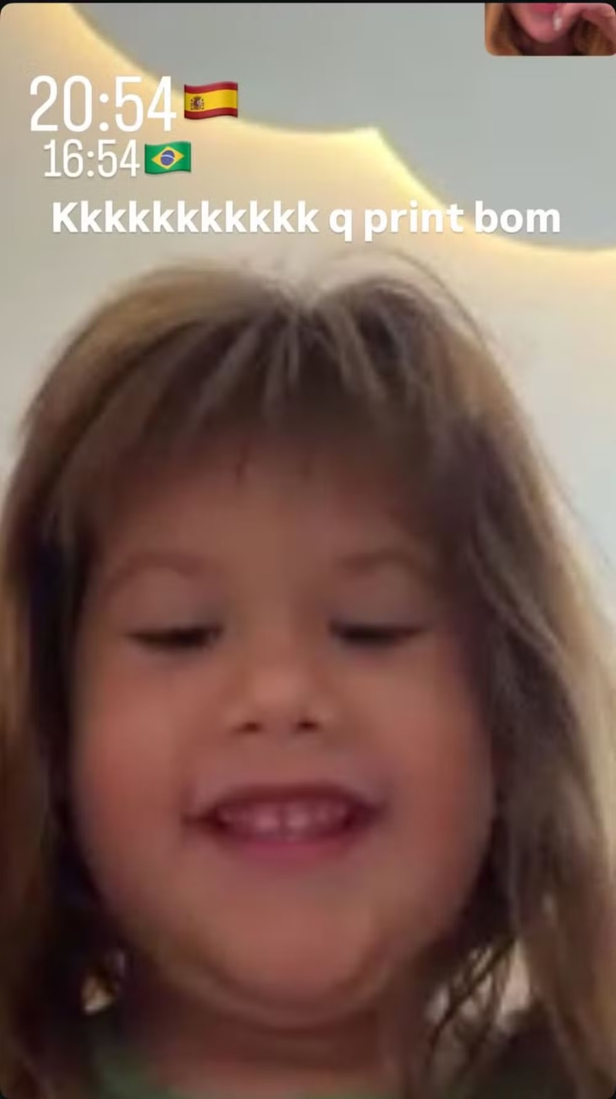 Virginia Fonseca, de 26 anos, compartilhou nas redes sociais registros de uma chamada de vídeo com os três filhos, frutos do relacionamento com Zé Felipe: Maria Alice, de 4 anos, Maria Flor, de 3, e o caçula José Leonardo, de 1 ano. Nos prints publicados pela influenciadora, Vini Jr. também aparece participando da conversa com as crianças.