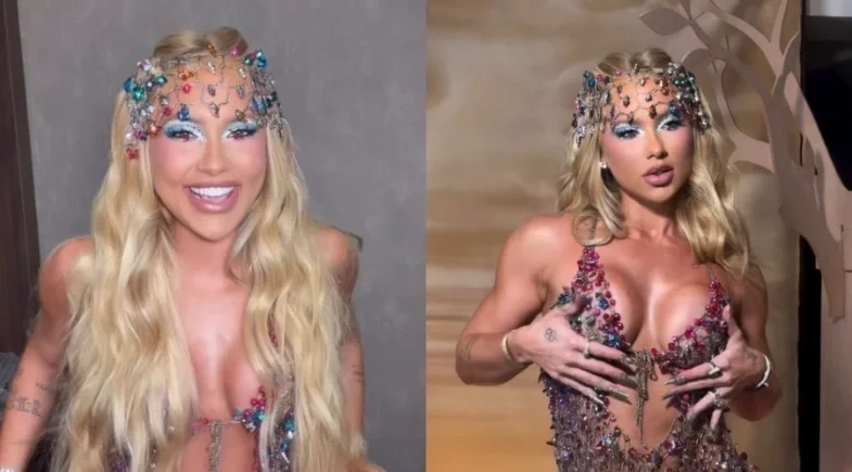 O plano mudou quando recebeu o convite direto da organização para participar do momento no palco. Com a entrada da bateria, ela decidiu acompanhar o desfile musical, mas o figurino não resistiu aos movimentos. Segundo a influenciadora, a roupa começou a ceder durante o samba, gerando desconforto. “Não queria mais tampar meu peito”, relatou.