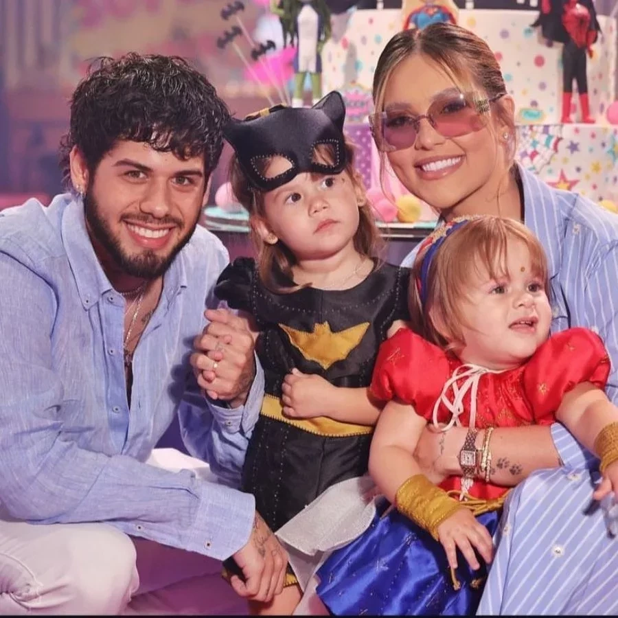 Maria Alice fantasiada de Batman, ao lado do pai Zé Felipe, Virginia e Maria Flor.Foto: Reprodução/Instagram