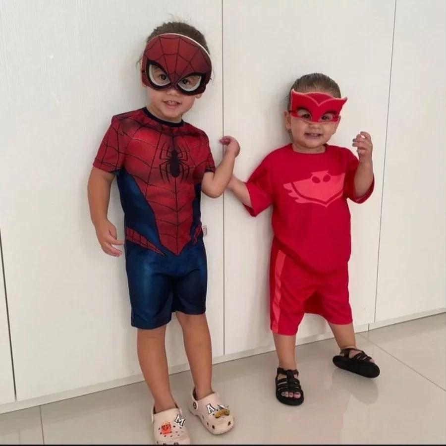Maria Alice fantasiada de Homem-Aranha ao lado da irmã, Maria Flor.Foto:Reprodução/Instagram