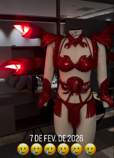 A rainha de bateria da Grande Rio, Virginia Fonseca, revelou os efeitos especiais da fantasia de caranguejo que usou no ensaio técnico da escola de samba. A peça, que gerou rumores de gravidez, era mais elaborada do que o público pôde ver, mas a chuva impediu a ativação dos efeitos por risco de curto-circuito.