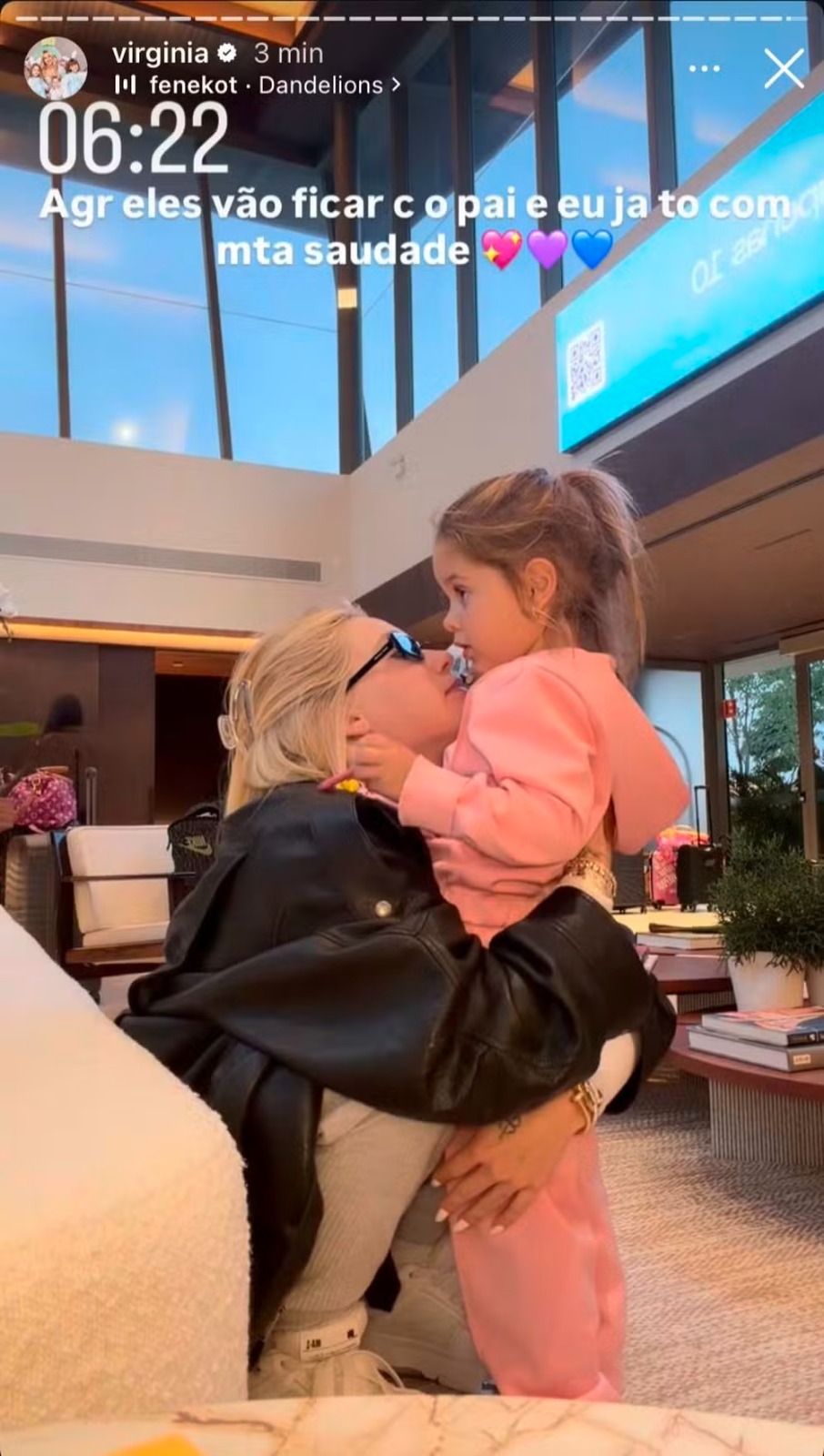 Ao chegar ao país, Virginia anunciou que os filhos ficarão com o ex-companheiro Zé Felipe, de 27 anos. “Agora eles vão ficar com o pai e eu já tô com muita saudade”, escreveu ela em seu Instagram.