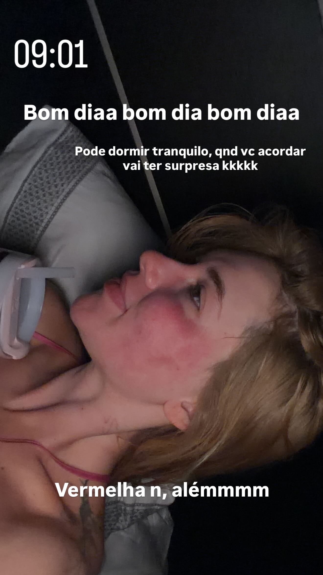 A empresária então mostrou o rosto completamente avermelhado. "Vermelha, não, além. Bora acordar, viver", afirmou.