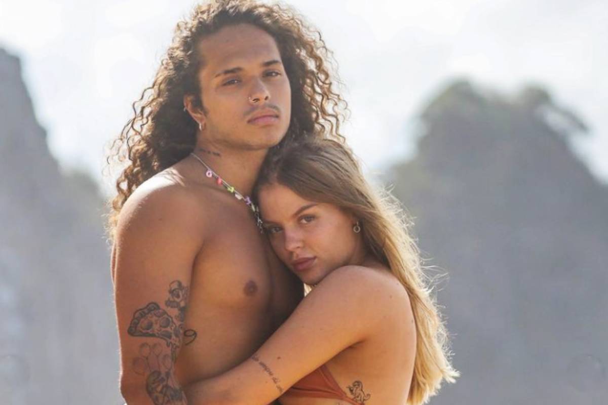 Luisa Sonza e Pedro Calais, da banda Lagum, se aproximam durante passeio