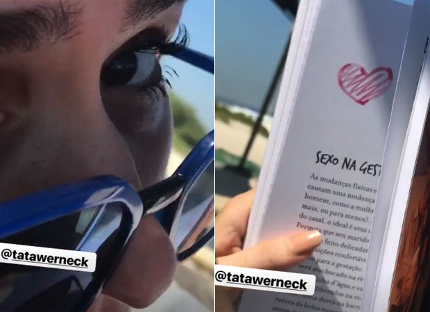 Rafael Vitti ficou animado ao flagrar a noiva, Tatá Werneck, lendo um livro sobre sexo na gestação. O ator de Verão 90 filmou a apresentora atenta a sua leitura enquanto renovava o bronze. "Oi! Sexo na gestação!", disse ele. As informações são da Quem.
