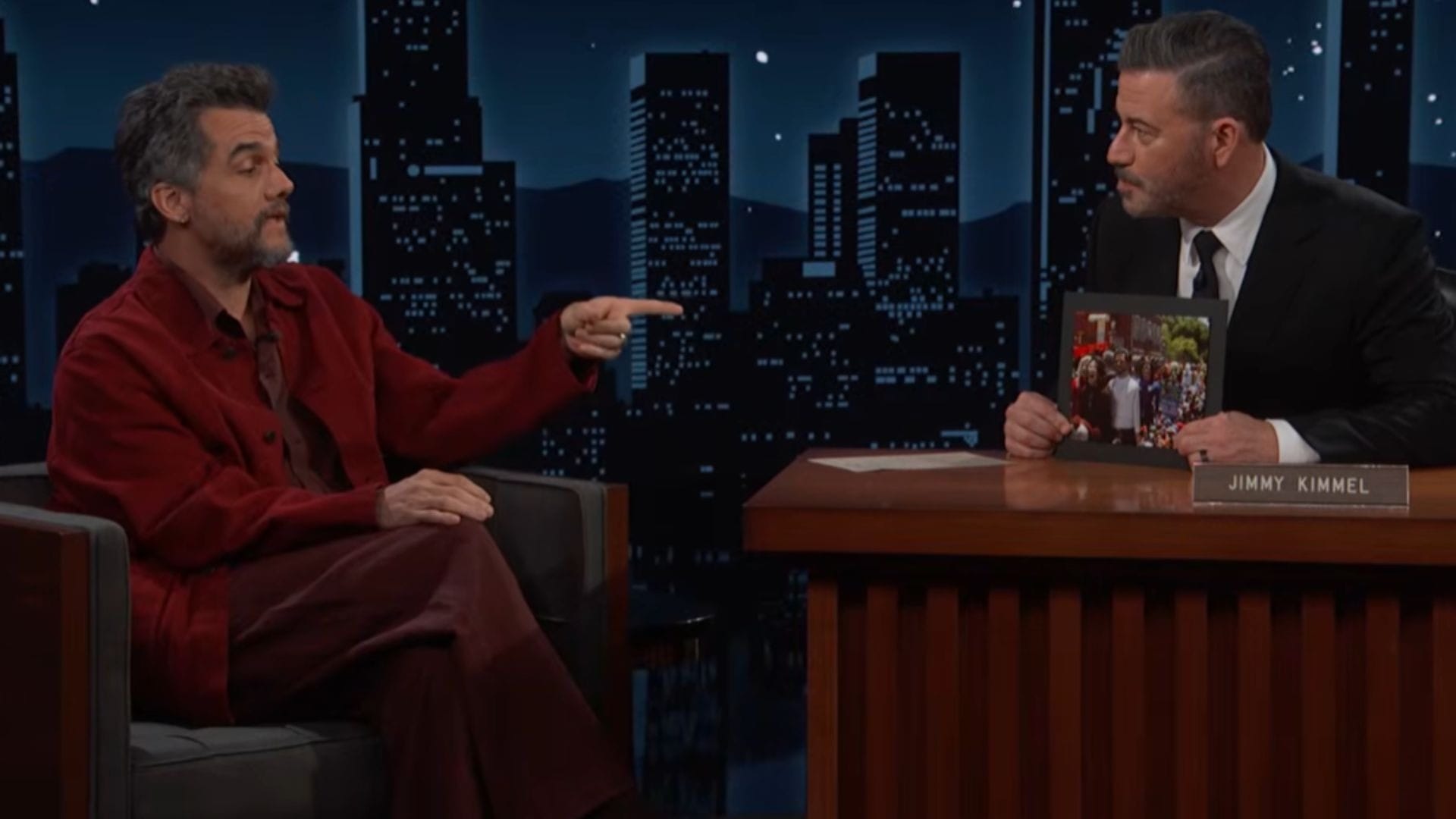 Durante a entrevista, Kimmel perguntou se o ator brasileiro já havia preparado um discurso de agradecimento para a premiação. Em tom de humor, Wagner respondeu que se inspirou em uma fala recente do próprio apresentador.