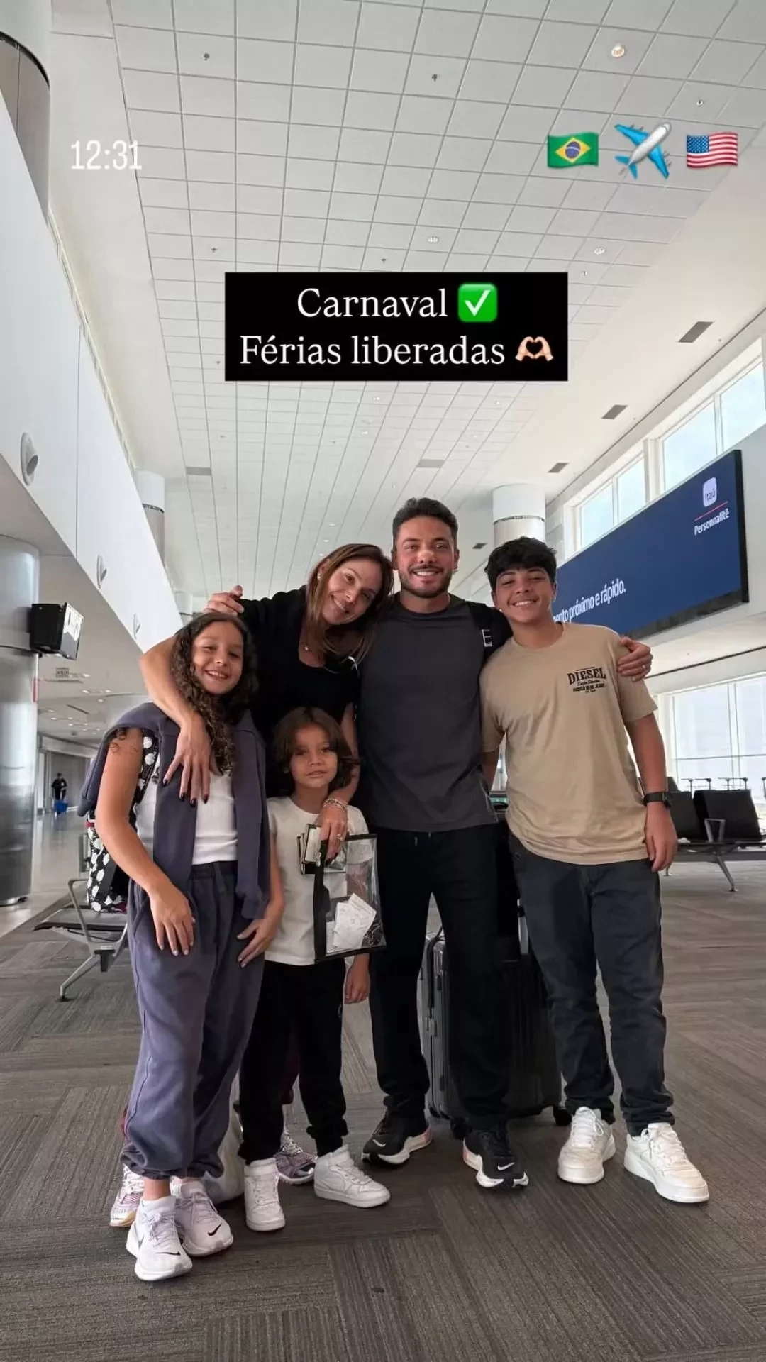 "Carnaval (X). Férias liberadas", registrou Safadão ao lado de toda a família. Além de Thyane, o artista está acompanhado de Yudhy, de 14 anos (fruto de seu relacionamento anterior com Mileide Mihaile), além de Ysis, de 9 anos, e Dom, de 6, ambos nascidos de sua união com Thyane.