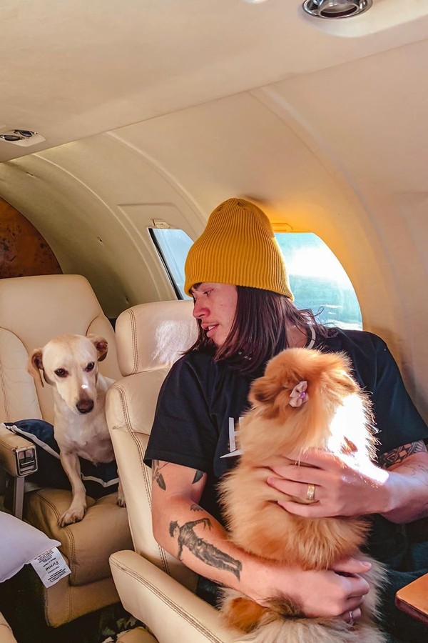 Os fãs deixaram vários comentários. "Ai que amor viajar com elas", escreveu Sabrina Sato. "Viajando com os melhores amigos do homem", afirmou o ator Julio Rocha. "Meu cachorro já é metido porque agora tem uma varanda, imagina viajando de jatinho kkk", disse ainda uma fã.