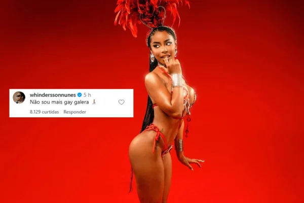 Nas imagens, Lorena aparece usando um figurino típico dos desfiles das grandes escolas de samba. Nos comentários da publicação, Whindersson escreveu: “Não sou mais gay, galera”, em tom de brincadeira. A mensagem faz referência a boatos antigos sobre a sexualidade do comediante, assunto que ele já abordou publicamente.
