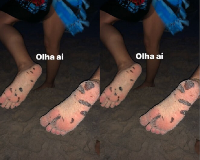 "Acabei de postar um vídeo com as datas dos shows e todo mundo achando muito bonita a praia e falando: Que legal que o óleo não chegou aí. Pois bem, vou mostrar para vocês um casal de fãs que eu pedi para tirar uma foto de como os pés deles ficaram após uma caminhada na praia", disse ele.