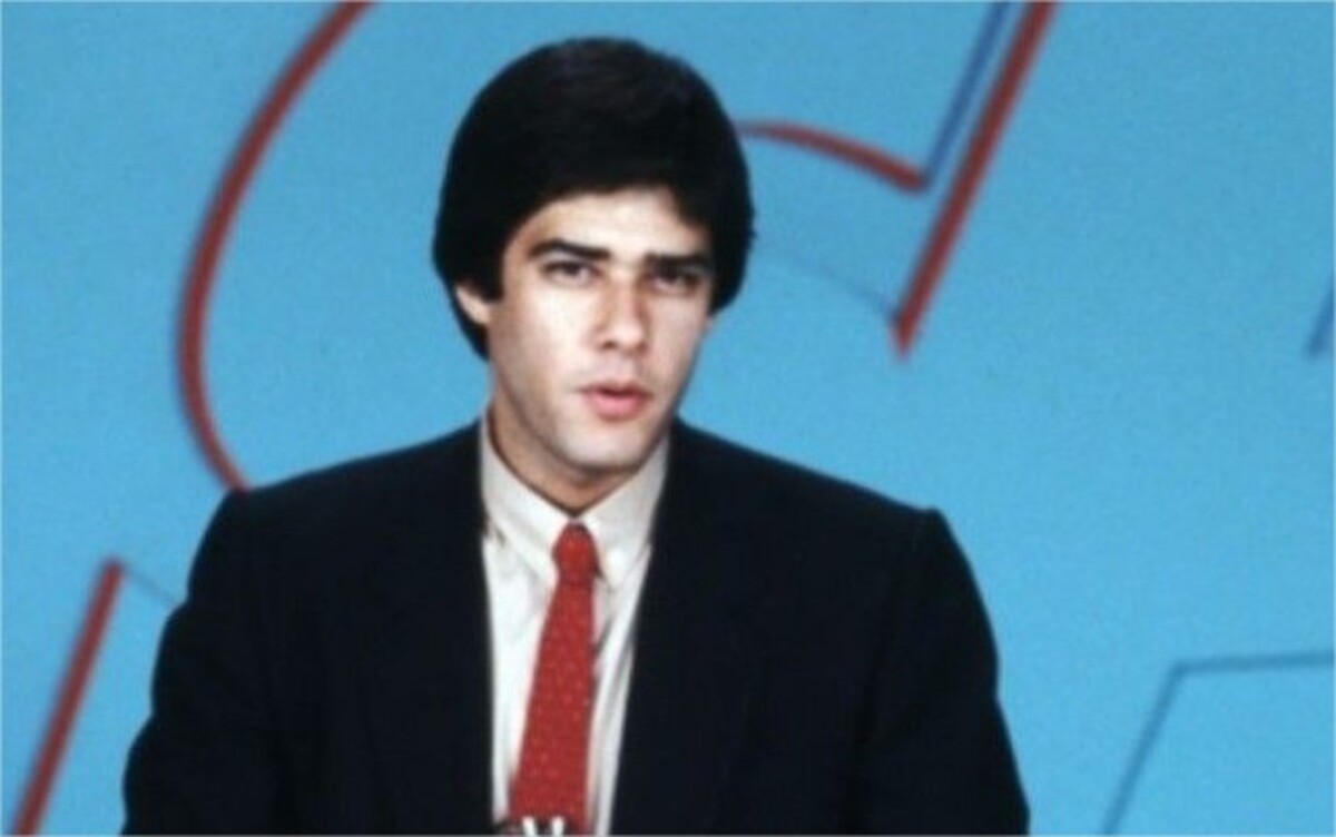 William Bonner apresentou o SPTV entre 1986 e 1988. Na época, o jornalista usava um corte de cabelo com bastante volume.