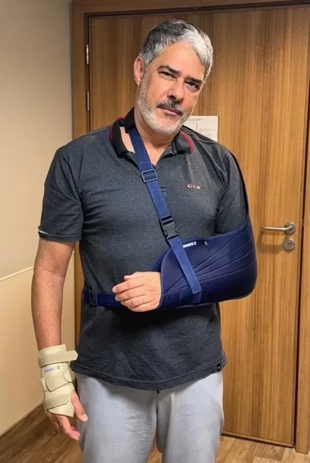 William Bonner usou suas redes sociais neste domingo (22), para detalhar a lesão que o deixou com uma tipoia no braço esquerdo e a mão direita imobilizada. Após surgir em seu perfil usando os apetrechos médicos, no sábado (21), o apresentador do Jornal Nacional retornou à rede social para contar como aconteceu a fratura e como deve ser o processo de recuperação.