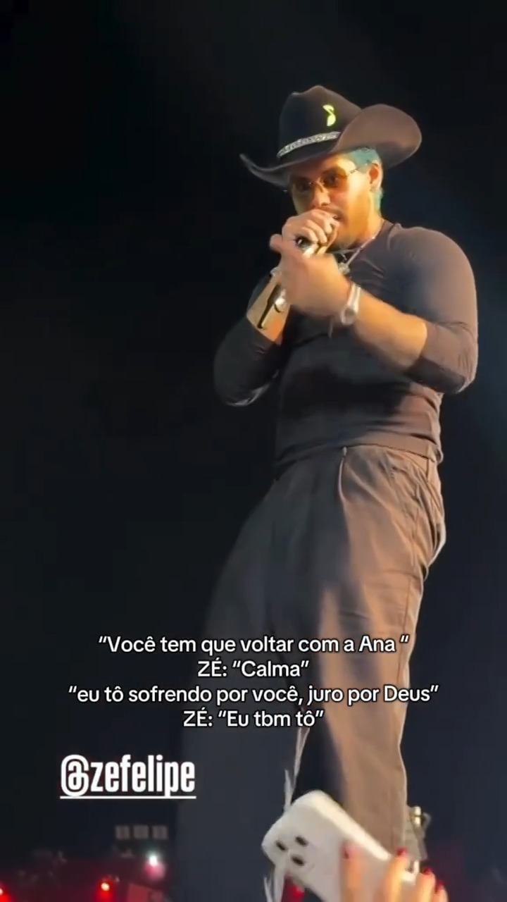Em um vídeo que circula nas redes sociais, o artista aparece no palco usando dois chapéus de cowboy enquanto interage com o público. Em meio à apresentação, um fã grita: “Acho que você tem que voltar para a Ana”. Sem graça, o cantor ri e responde: “Calma!”.