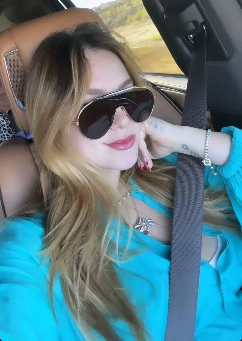 “Olha só! Cheguei aqui no avião com surpresa! Ontem ele esqueceu, né? [risos] Mas hoje veio! Delícia! Obrigada, amor, te amo!”.