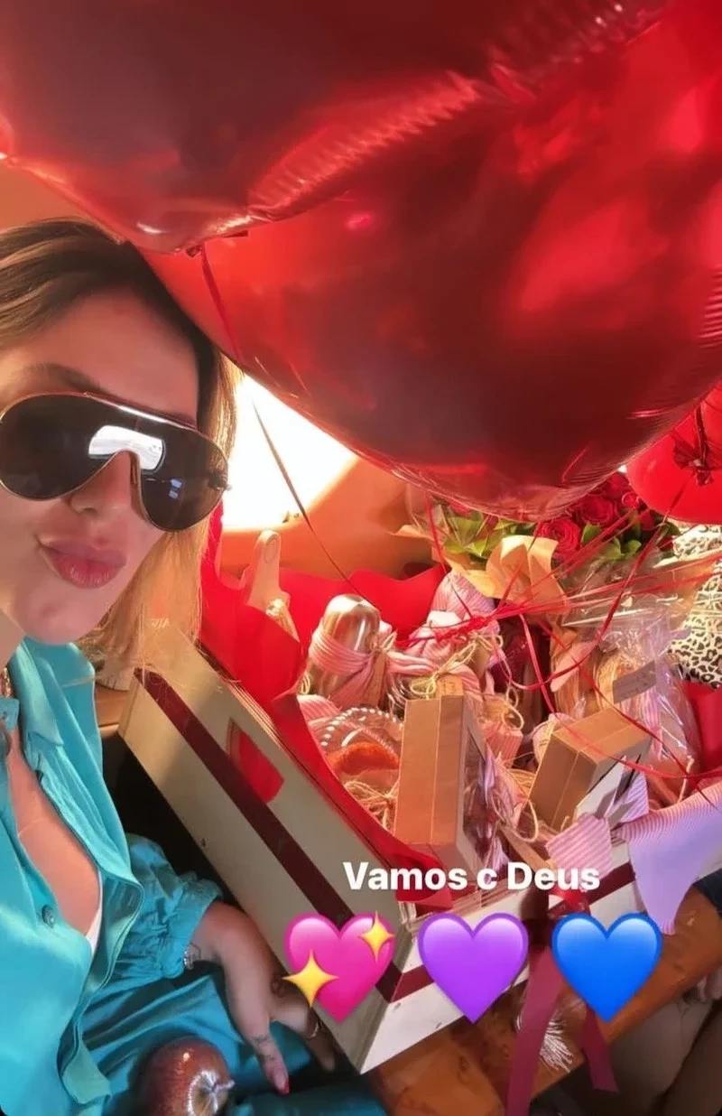 A mãe de Maria Alice e Maria Flor mostrou registros do momento, com muitos balões em formato de coração, flores e uma cesta com diversos itens. O filho de Leonardo aproveitou que iriam se deslocar para São Paulo, para gravar o programa da amada, e mostrou que nunca é tarde para comemorar.