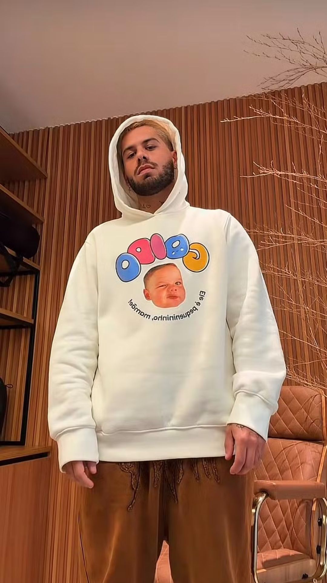 Zé Felipe voltou a movimentar as redes sociais neste domingo (18), ao publicar um vídeo no TikTok usando um moletom com o rosto do filho caçula, José Leonardo, e a frase “Ele é pequenininho, mamãe”, dita anteriormente por Virginia Fonseca, sua ex-esposa, o que despertou curiosidade dos fãs pela referência e pela forma descontraída do cantor se posicionar online.