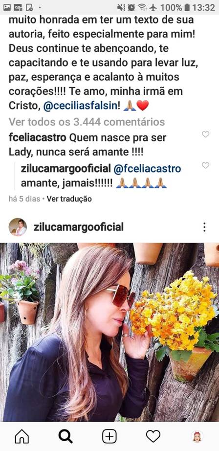 Em comentários de apoio, um chamou atenção. Uma seguidora escreveu para Zilu: “Quem nasce para ser lady nunca será amante”. A ex de Zezé não titubeou e mandou: “Amante, jamais”.